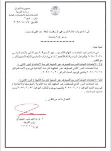 وقالت الوزارة في بيان لها، إن “اللجنة الدائمة للامتحانات تعلن مواعيد الامتحانات النهائية للصفوف غير المنتهية ( الدور الثاني ) وللمراحل الدراسية كافة، وكما موضح في الادنى: