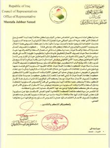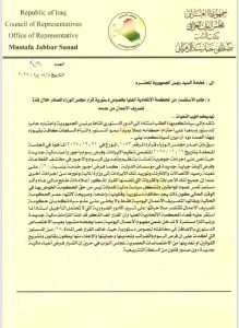 وجّه عضو مجلس النواب السابق الفائز في الانتخابات الاخيرة، مصطفى جبار سند، استفساراً الى رئيس الجمه ورية العراقية عبد اللطيف جمال رشيد “باعتباره “حامي الدستور” عن شرعية قرارات مجلس الوزراء المنتهية ولايته الأخيرة.
