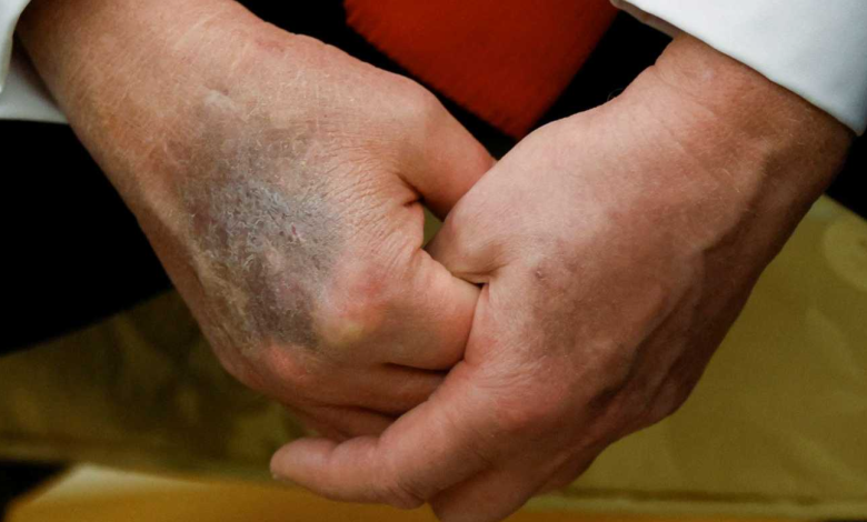 رُصِدت كدمة زرقاء داكنة على اليد اليمنى للرئيس الأمريكي دونالد ترامب البالغ من العمر (عاماً 79) خلال لقائه في المكتب…